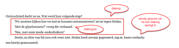Een dialoog is het uitwisselen van zinnen die letterlijk in je verhaal uitgesproken worden: eerst zegt de een iets, dan de ander, enzovoort. Als ik het hier heb over dialoog dan bedoel ik daarmee zo'n blok van zinnen die door de personages, de gesprekspartners worden uitgesproken. Als ik het heb over een dialoogzin, dan bedoel ik daarmee een zin die binnen een dialoog wordt uitgesproken. Dialoog en dialoogzinnen hebben elk hun eigen regels.