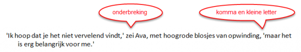 Onderbreek je een zin, zet dan vóór de onderbreking een komma. Eindig je vervolgens de onderbreking met een komma, ga dan verder met een kleine letter: